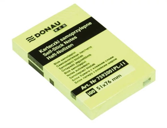 Öntapadó jegyzettömb, 51x76mm, 100 lap, DONAU "ECO", sárga