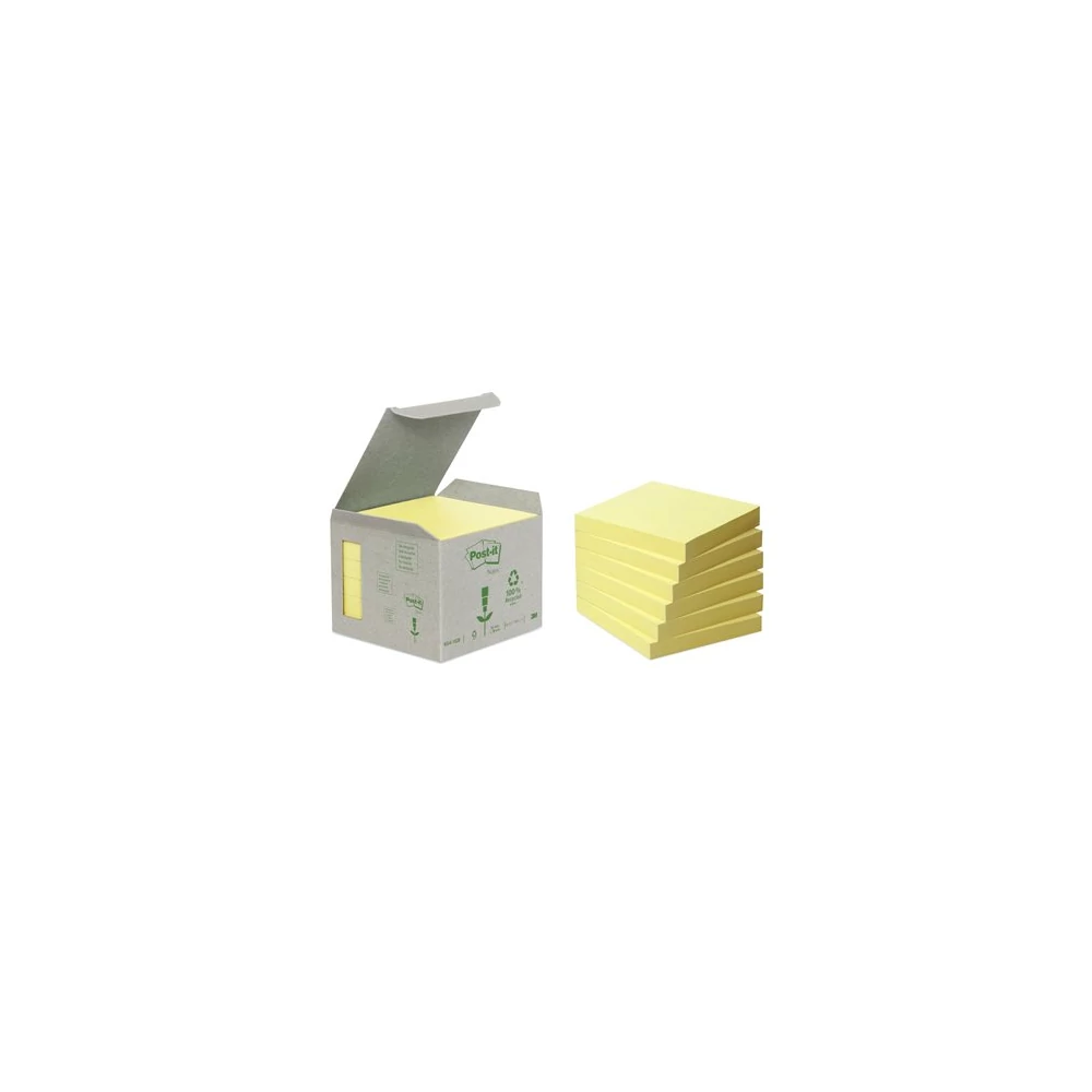 Öntapadó jegyzettömb, 76x76 mm, 6x100 lap, környezetbarát, 3M POSTIT, sárga